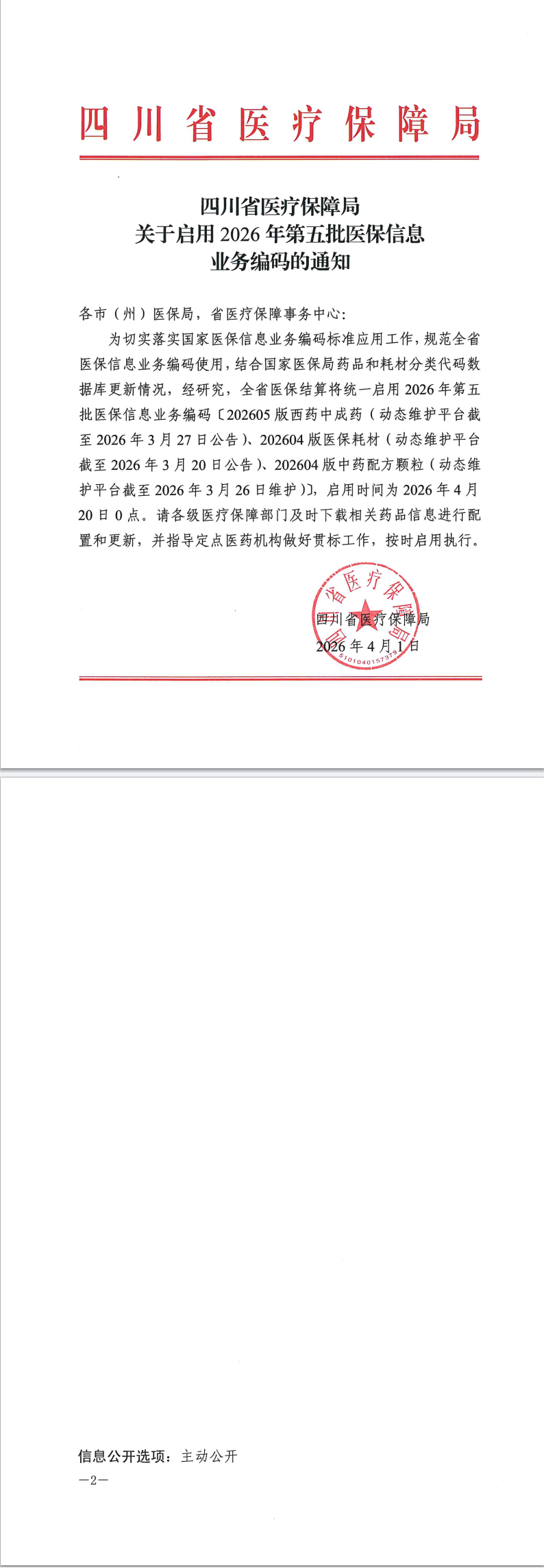 關(guān)于啟用2026年第五批醫(yī)保信息業(yè)務(wù)編碼的通知