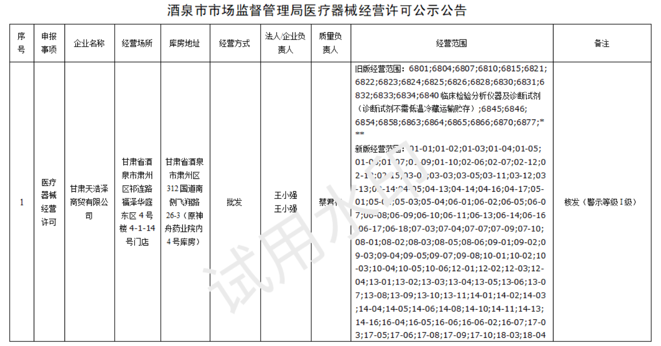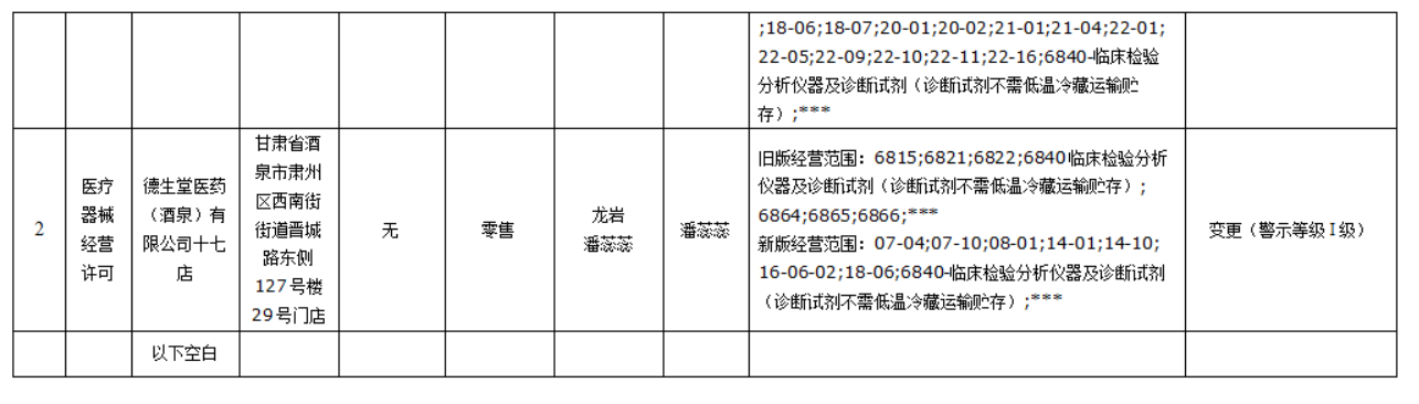 酒泉市醫(yī)療器械經營行政許可事項公示公告(2026第11號)