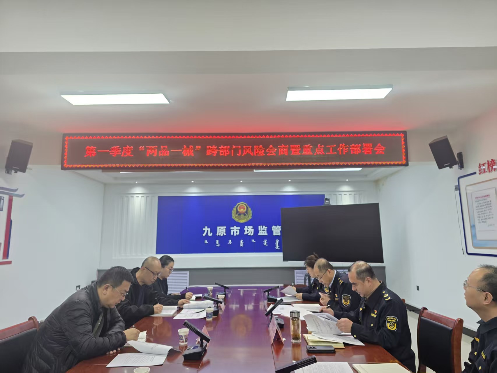 ??? 為全面壓實(shí)“兩品一械”質(zhì)量安全監(jiān)管責(zé)任,精準(zhǔn)防范化解各類風(fēng)險(xiǎn)隱患,切實(shí)守護(hù)人民群眾生命健康權(quán)益,3月16日九原區(qū)召開2026年第一季度“兩品一械”跨部門風(fēng)險(xiǎn)會(huì)商暨重點(diǎn)工作部署會(huì)。重點(diǎn)聚焦、推進(jìn)醫(yī)療機(jī)構(gòu)藥品追溯體系建設(shè)及藥房規(guī)范化管理和醫(yī)?;鹫蔚葘m?xiàng)工作。區(qū)市場(chǎng)監(jiān)管局、區(qū)衛(wèi)健委、區(qū)醫(yī)保局相關(guān)負(fù)責(zé)人及業(yè)務(wù)骨干參會(huì)。