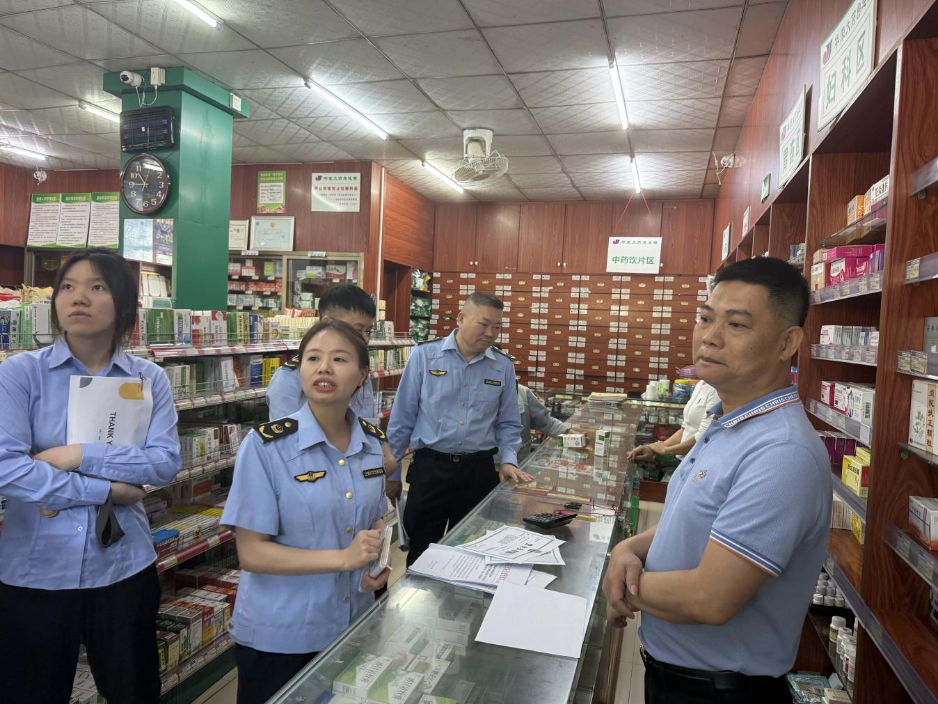 ??? 理論學習結(jié)束后,參訓人員前往轄區(qū)藥店開展現(xiàn)場實操教學。業(yè)務(wù)骨干以“手把手”方式,現(xiàn)場演示藥品零售企業(yè)執(zhí)業(yè)藥師配備情況排查、《藥品經(jīng)營許可證》核查、處方藥銷售環(huán)節(jié)檢查等實操流程,針對檢查中易出現(xiàn)的問題和難點進行詳細講解,并現(xiàn)場解答參訓人員的疑問,切實提升執(zhí)法人員的現(xiàn)場檢查實操能力。
