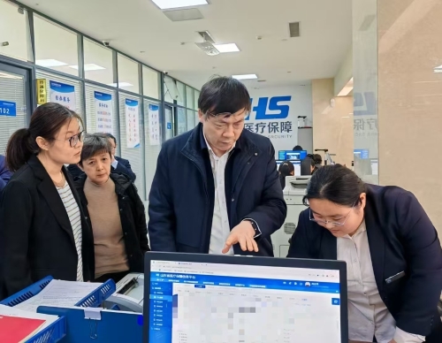 ??? 在定點醫(yī)療機構,左毅一行走進診室、病房、藥房、結算窗口,查閱相關系統(tǒng)、記錄、資料,與醫(yī)務人員、就診患者等交談,詳細了解規(guī)范診療、合理用藥、醫(yī)療服務價格、醫(yī)?;鹗褂?、集采及國談藥品配備、醫(yī)保智能監(jiān)控事前提醒等執(zhí)行落實情況,現(xiàn)場宣講政策,聽取意見建議。在當?shù)蒯t(yī)保部門,左毅一行直奔基金撥付、監(jiān)管稽核、參保繳費等科室,與有關負責人和工作人員進行交流,現(xiàn)場查看協(xié)議管理、基金撥付、稽核檢查、案件查辦、移交移送、信訪辦理等工作臺賬和文件資料,詢問了解重點任務落實情況。