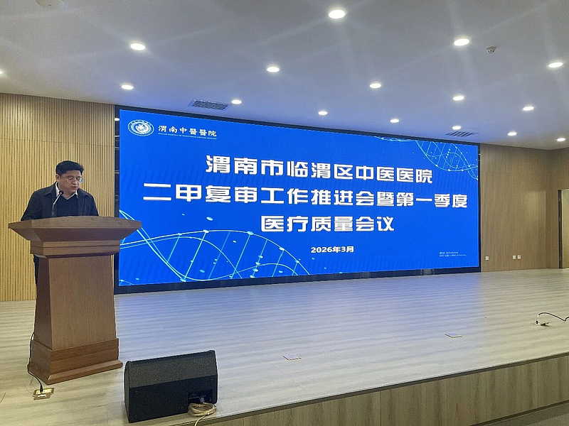 ??? 為全面落實國家中醫(yī)藥管理局及省、市中醫(yī)藥主管部門關(guān)于中醫(yī)醫(yī)院等級評審工作要求,確保我院2026年二級甲等中醫(yī)醫(yī)院復(fù)審順利通過,持續(xù)提升醫(yī)院醫(yī)療質(zhì)量管理水平。3月19日,渭南市臨渭區(qū)中醫(yī)醫(yī)院召開了二甲復(fù)審工作推進會暨第一季度醫(yī)療質(zhì)量會議。此次會議由醫(yī)務(wù)科副科長高燕主持,會議特邀國家衛(wèi)生健康委醫(yī)院管理研究所副研究員唐敏專家,臨渭區(qū)中醫(yī)醫(yī)院黨委副書記、院長席紅軍及領(lǐng)導(dǎo)班子成員出席本次會議。
