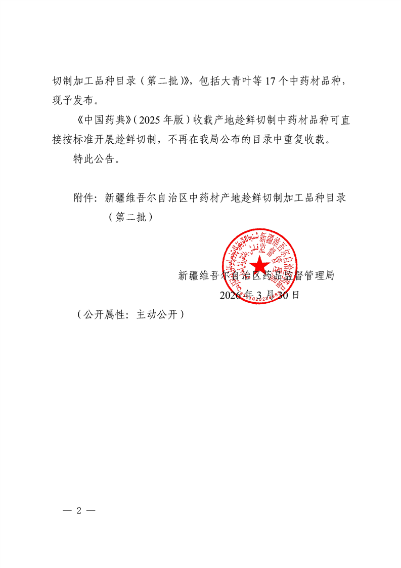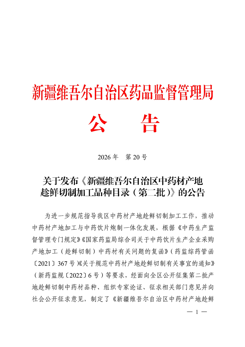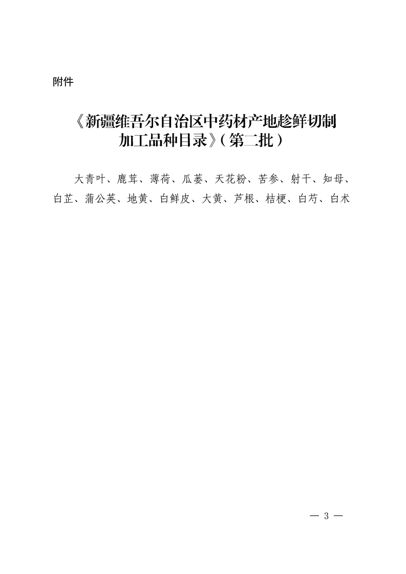 關(guān)于發(fā)布《新疆維吾爾自治區(qū)中藥材產(chǎn)地趁鮮切制加工品種目錄(第二批)》的公告