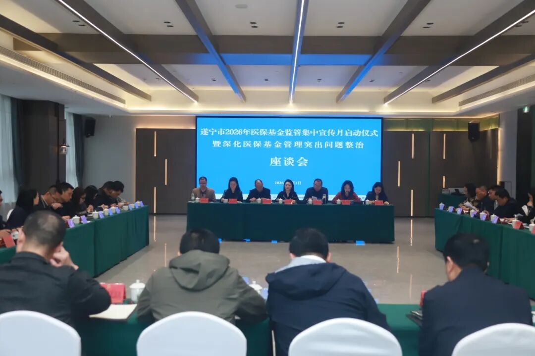 ??? 4月1日,遂寧市2026年醫(yī)?;鸨O(jiān)管集中宣傳月啟動儀式暨深化醫(yī)?;鸸芾硗怀鰡栴}整治座談會召開。會議采取“主會場+分會場”的形式進行,全面總結了2025年全市醫(yī)保基金管理突出問題專項整治工作成效,通報解讀了2026年重點任務,啟動以“貫徹條例實施細則 ?筑牢醫(yī)?;鸢踩谰€”為主題的醫(yī)?;鸨O(jiān)管集中宣傳月活動。市醫(yī)保局局長敬筠出席會議并講話。市醫(yī)保局黨組成員、副局長周筠主持會議。